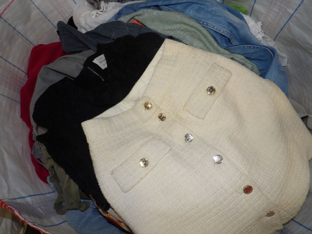 1/2 palette de 85 pièces de vêtements d'occasion et certains neufs : Femme, Enfant, Homme ( divers gammes et marques dont Maje - Sézanne...) - ATTENTION ce lot est d'occasion tous états et contient divers gammes donc de l'entrée type KIABI aussi. il n'est pas composé uniquement des marques citées.