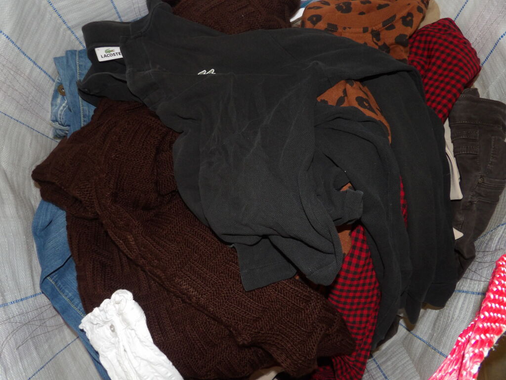 1/2 palette de 85 pièces de vêtements d'occasion et certains neufs : Femme, Enfant, Homme ( divers gammes et marques dont Maje - Sézanne...) - ATTENTION ce lot est d'occasion tous états et contient divers gammes donc de l'entrée type KIABI aussi. il n'est pas composé uniquement des marques citées.