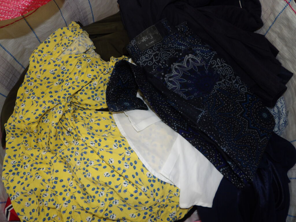 1/2 palette de 85 pièces de vêtements d'occasion et certains neufs : Femme, Enfant, Homme ( divers gammes et marques dont The Kooples - La Petite Etoile...) - ATTENTION ce lot est d'occasion tous états et contient divers gammes donc de l'entrée type KIABI aussi. il n'est pas composé uniquement des marques citées.