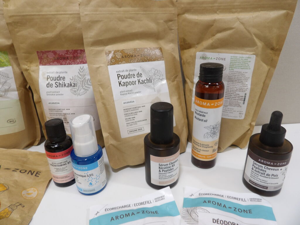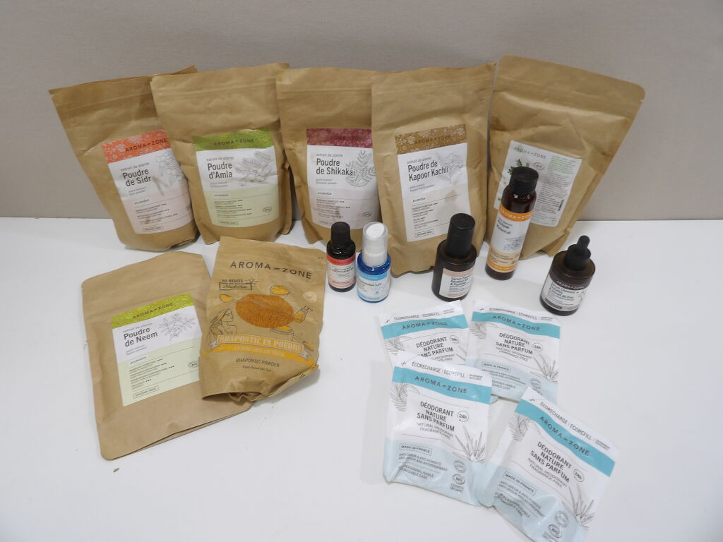 AROMA - ZONE : Lot de x15 articles : Sérums cheveux, Huile, Cosmétique maison, poudres, déodorant....