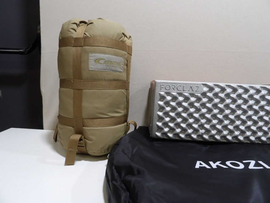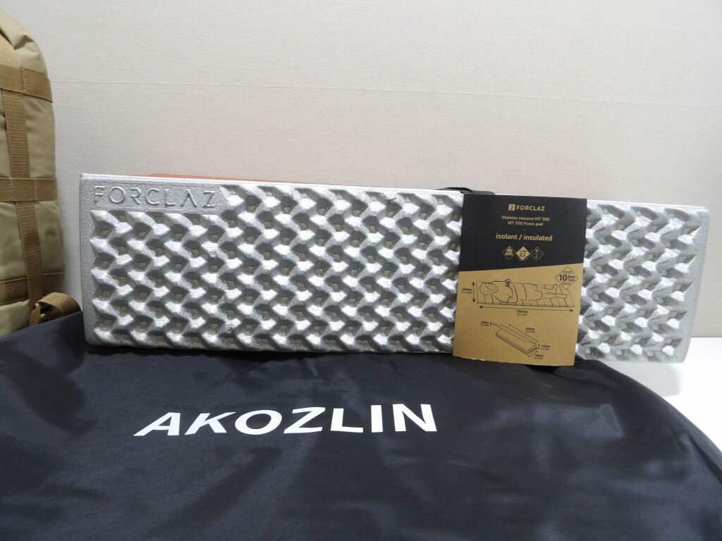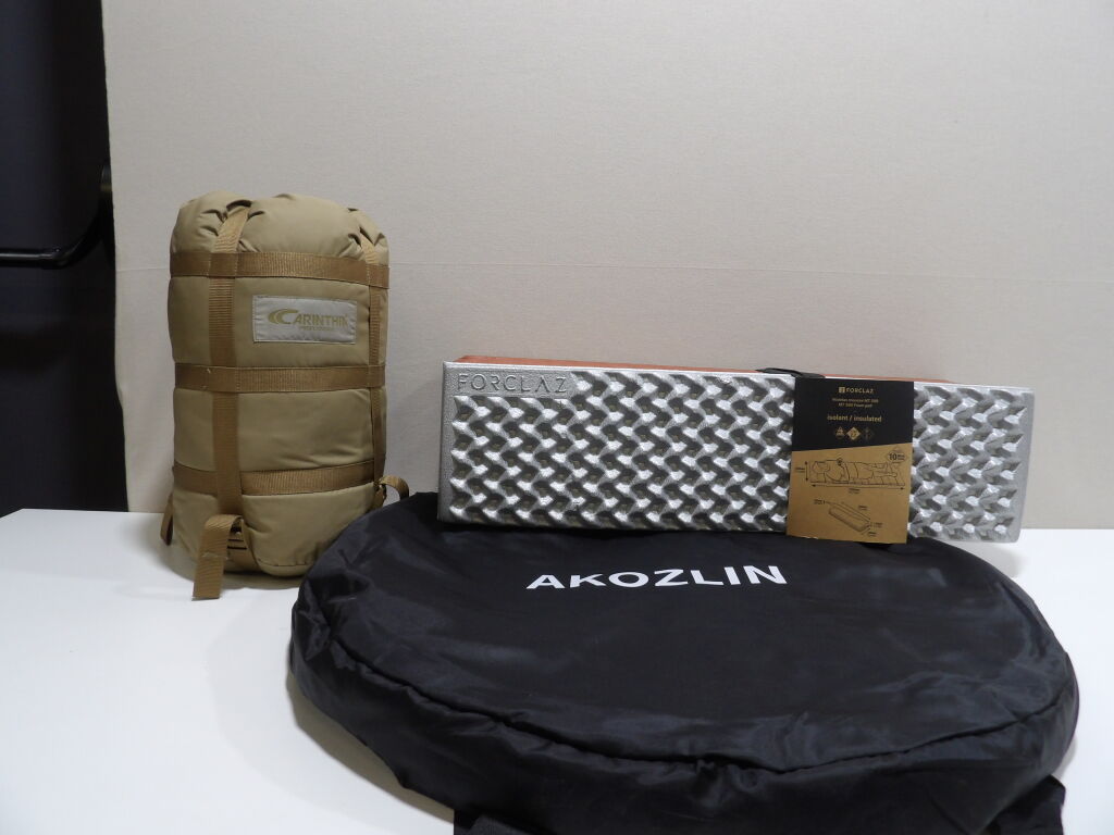 CAMPING : Lot de x3 articles neufs et occasion : Petite tente AKOZIN, Matelas mousse MT 500 Decathlon et Sac de couchage CARINTHIA.