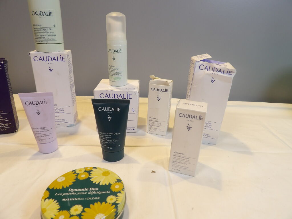 CAUDALIE 14 Pcs : Crème sorbet - Soin corps - Masque intense detox - Crème visage - Déodorant - Mousse nettoyante Sérum anti-taches - Patch yeux etc.... Neuf et Occasion