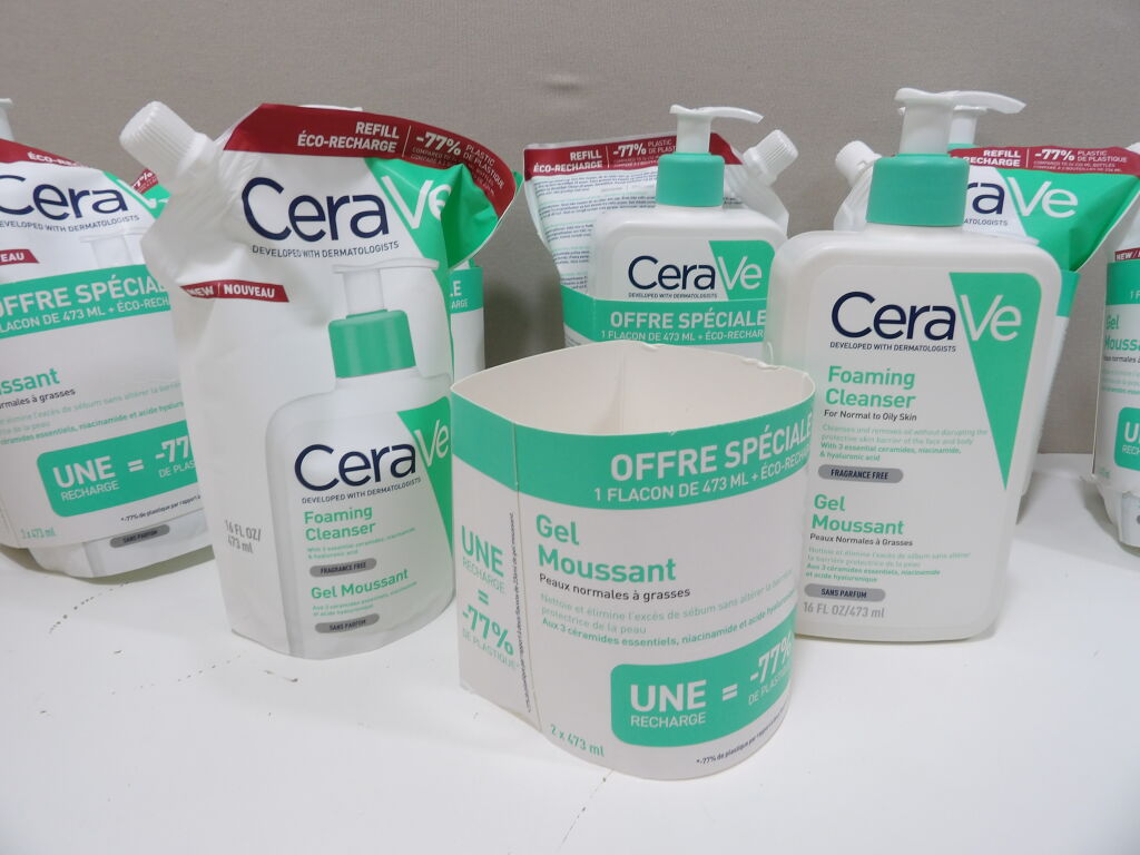 CeraVe : Neuf - Lot de x6 Gel Moussant (peaux normales à grasses) de 473ML, et une éco recharge de 473ML.