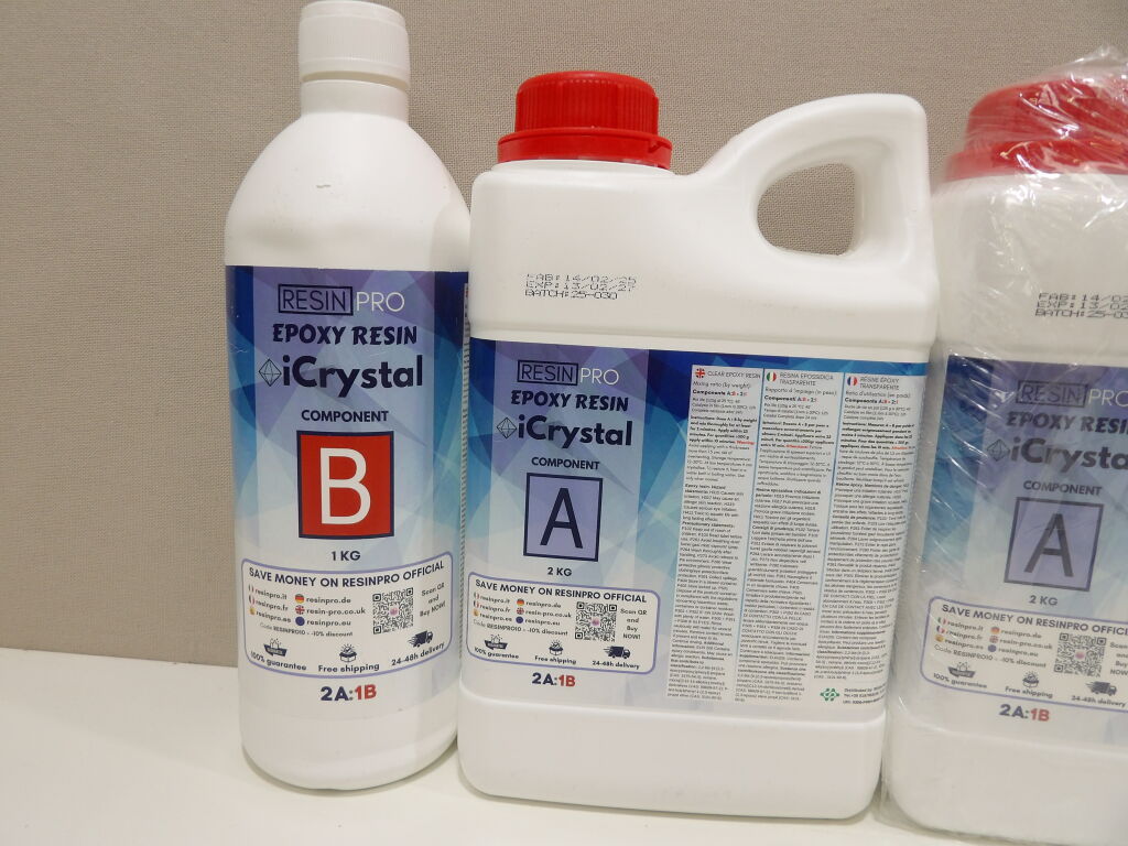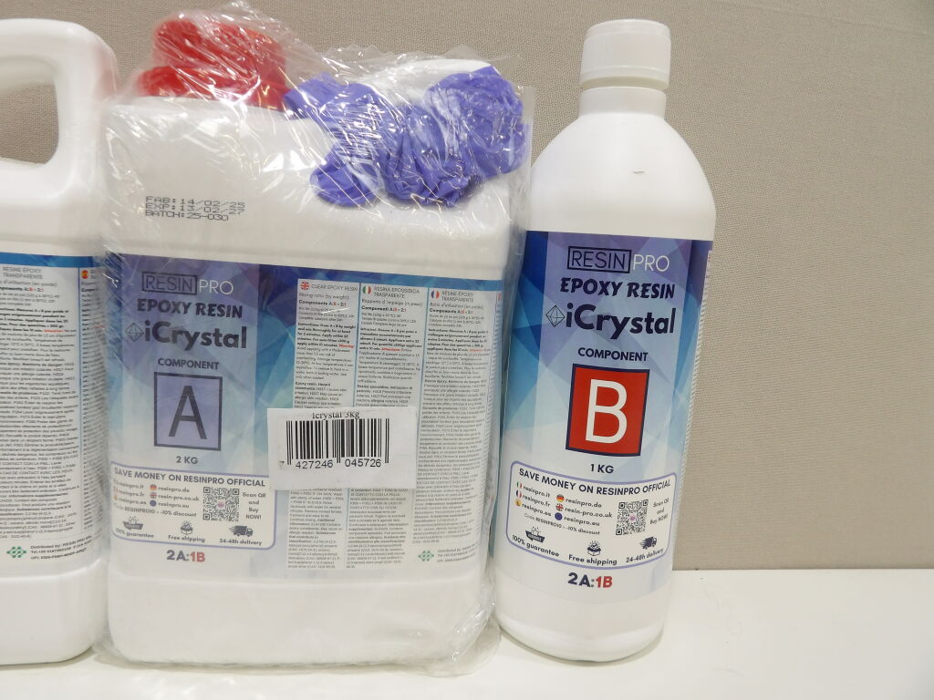 EPOXY Resin Crystal - Component A x2 bidons 2kgs, et Component B x2 bouteilles 1kg.