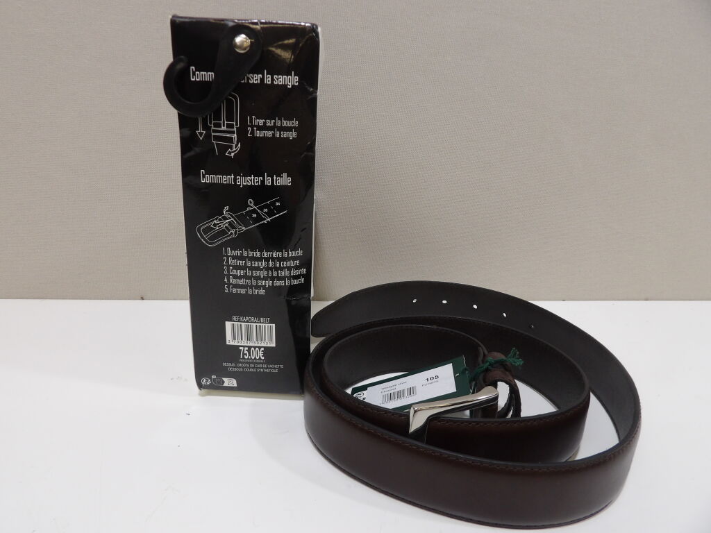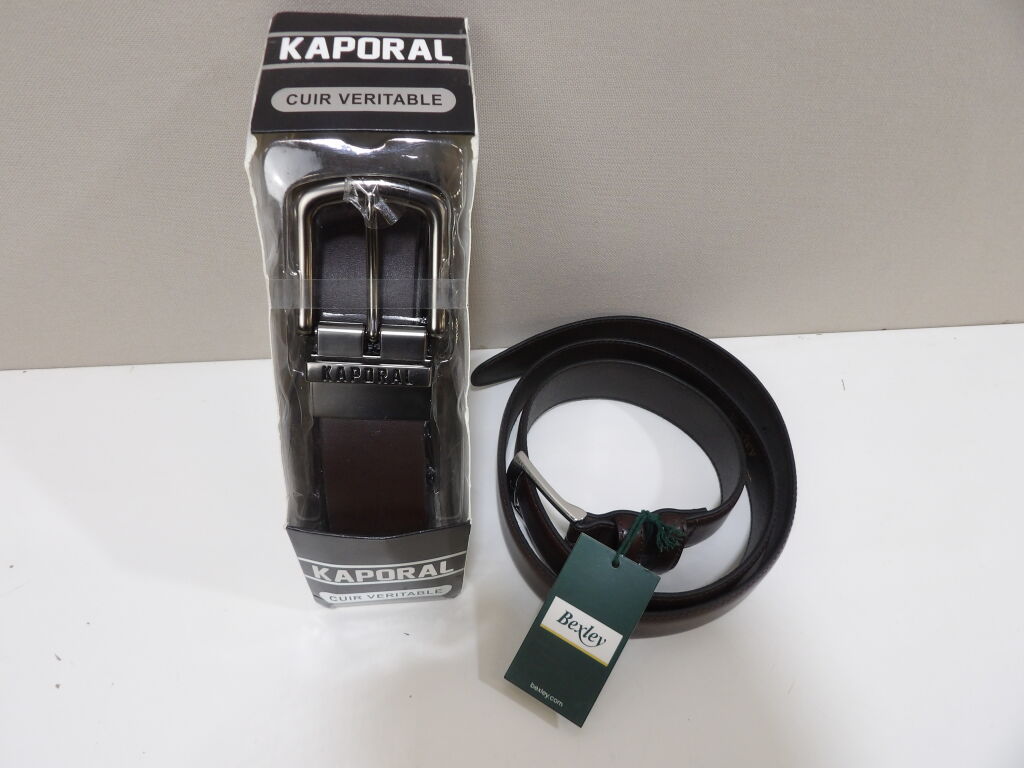 HOMME - Lot de x2 ceintures neuves : BEXLEY chocolat T105 et KAPORAL Ceinture reversible en cuir, taille ajustable du 36 au 52.