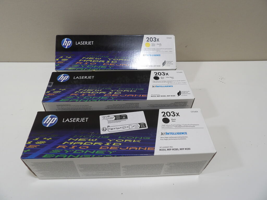 IMPRESSION - Lot de 3x Toners HP 203 X - NEUFS - coloris 2x noir + 1x jaune
