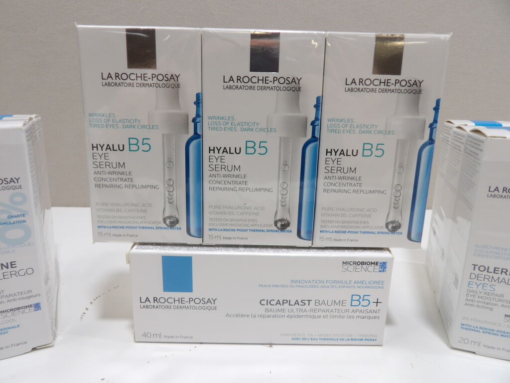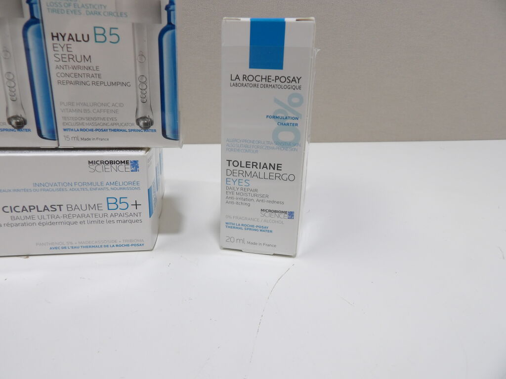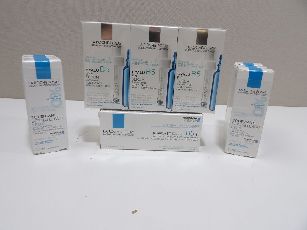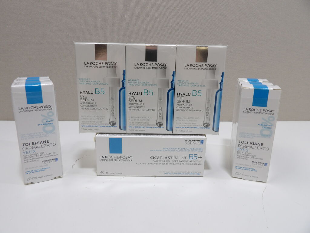 LA ROCHE-POSAY : Lot de x12 articles NEUFS: x6 TOLERIANE Dermallergo Yeux, x3 HYALU B5 Yeux serum et x3 CICAPLAST BAUME B5+.