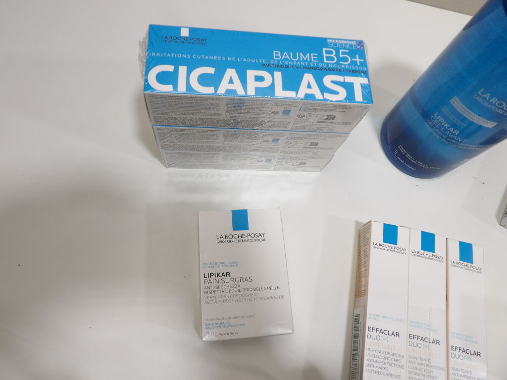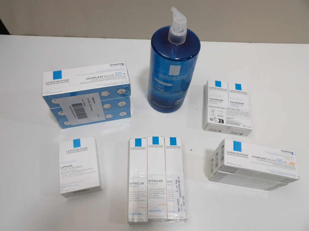 LA ROCHE-POSAY : Lot de x13 articles NEUFS: x3 CICAPLAST Baume B5+, x3 CICAPLAST Baume B5+ spf 50, x3 EFFACLAR DUO + Unifiant, x2 TOLERIANE Sensitive creme, x1 Lipikar pain surgras et x1 Lipikar gel lavant.