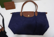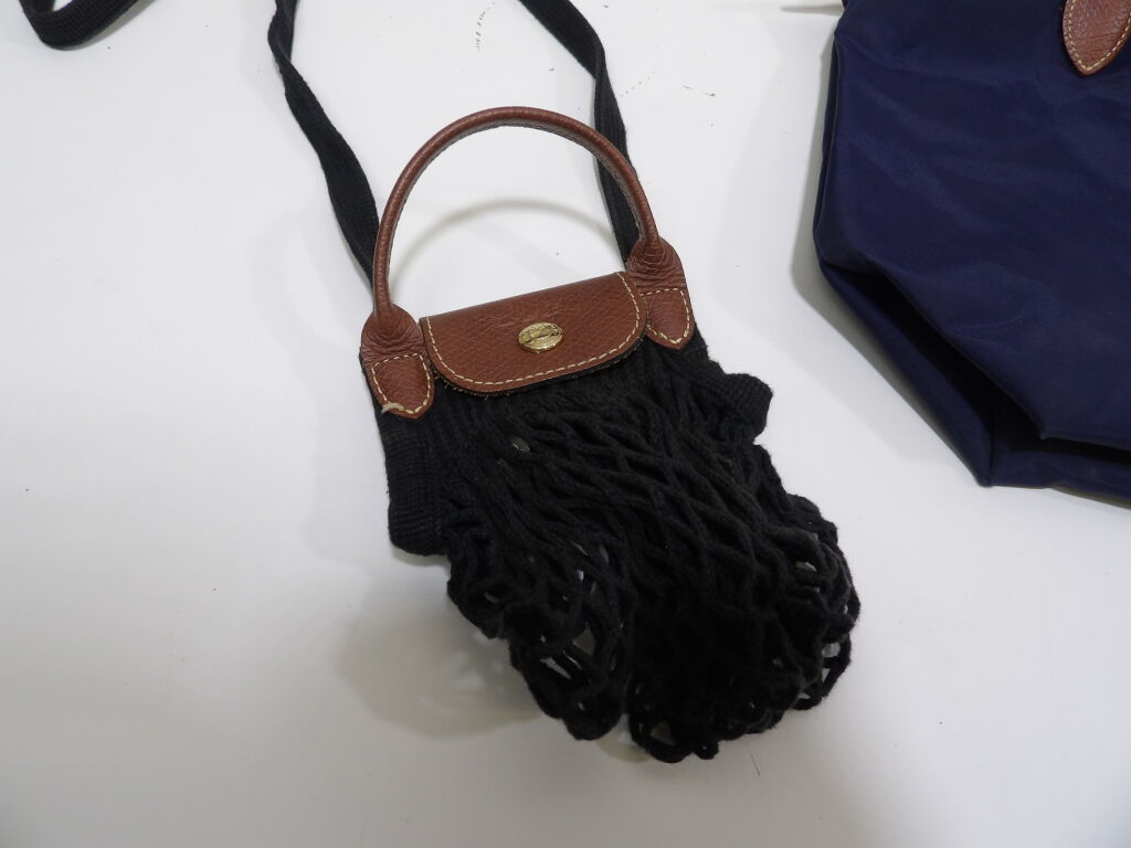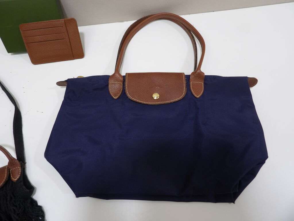 LONGCHAMP : Lot de x3 articles neufs et d'occasion : Porte-cartes 9x12,5cm; Sac Pliage 39x24CM bleu marine, et mini sac filet noir.