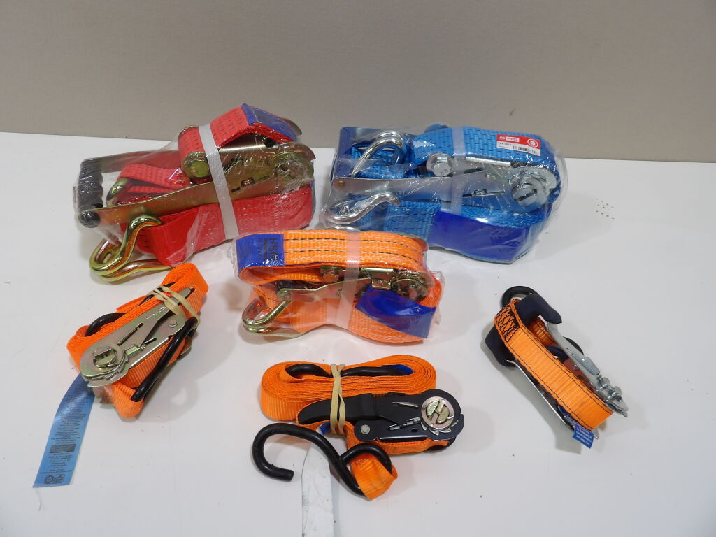 Lot de 7 divers sangles et raccords, neuves, différentes tailles.