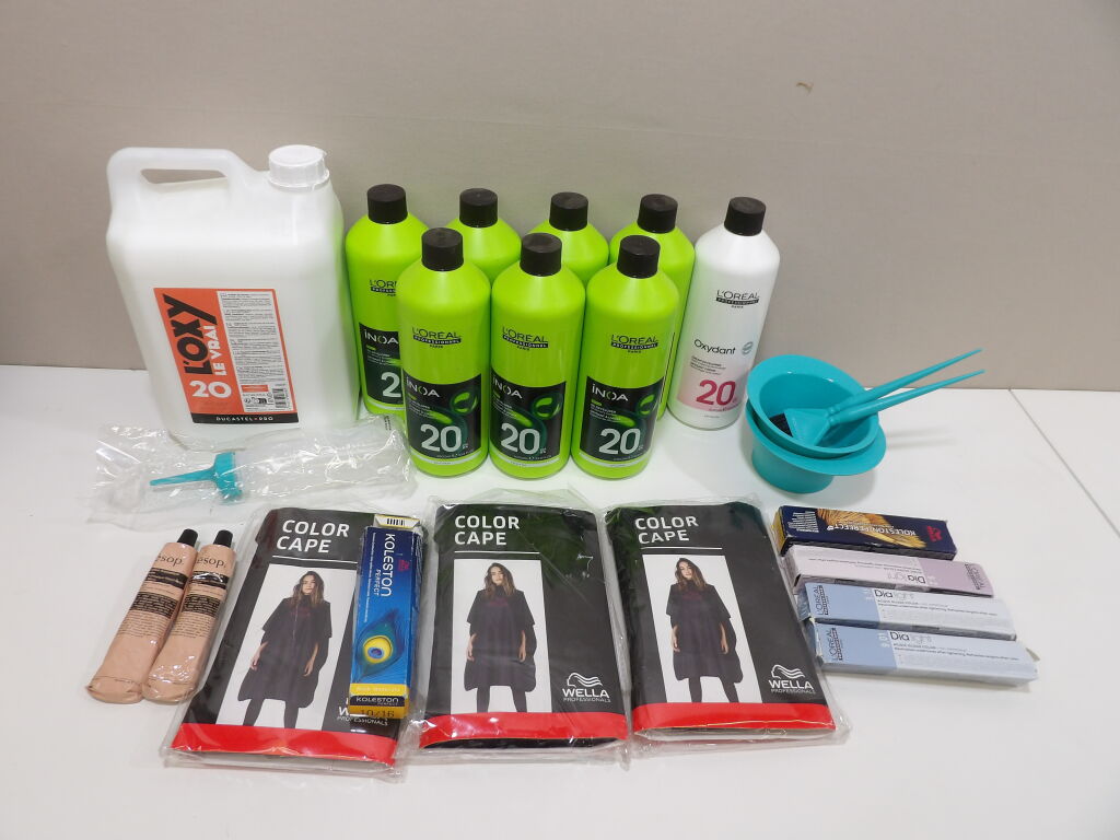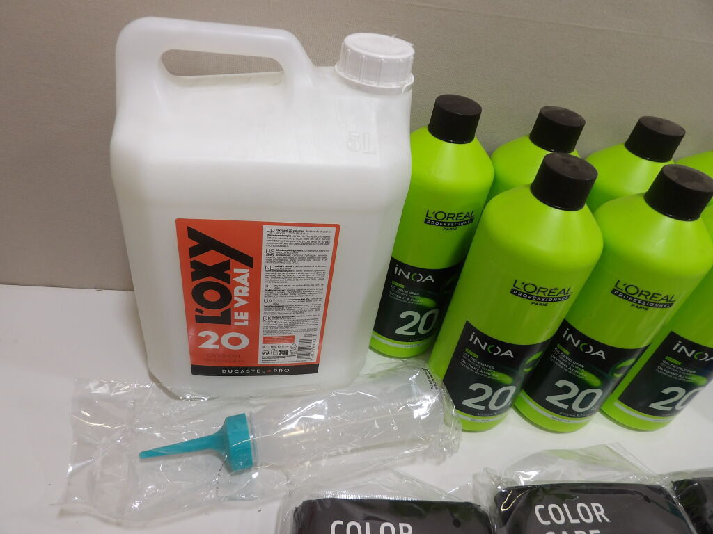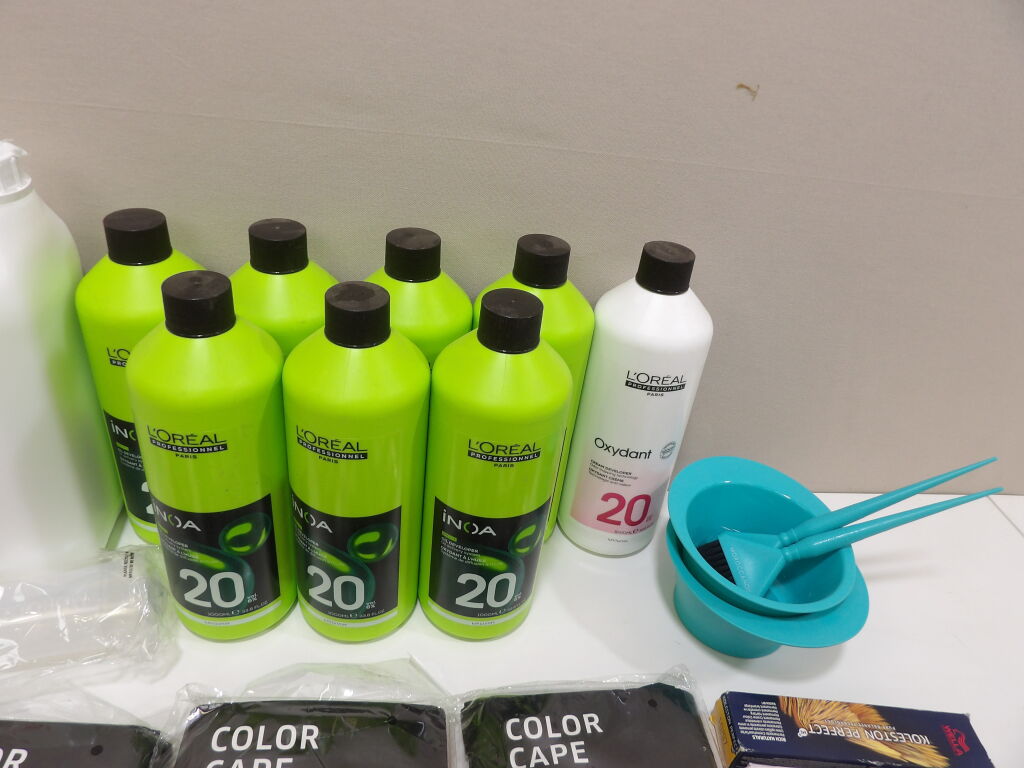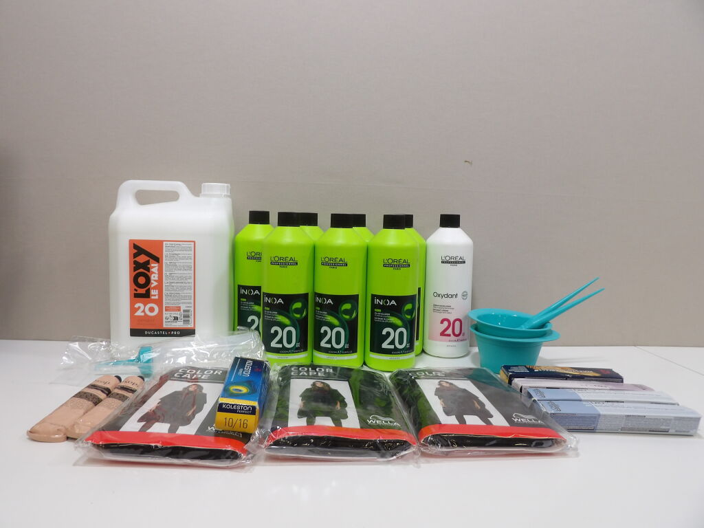 Lot d'une trentaine d'articles NEUFS et OCCASION pour cheveux : OXYDANTS dont L'Oréal Paris, crèmes colorantes, etc ....