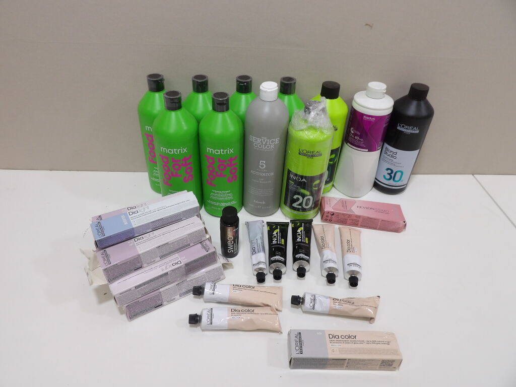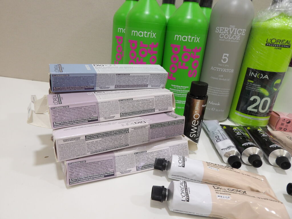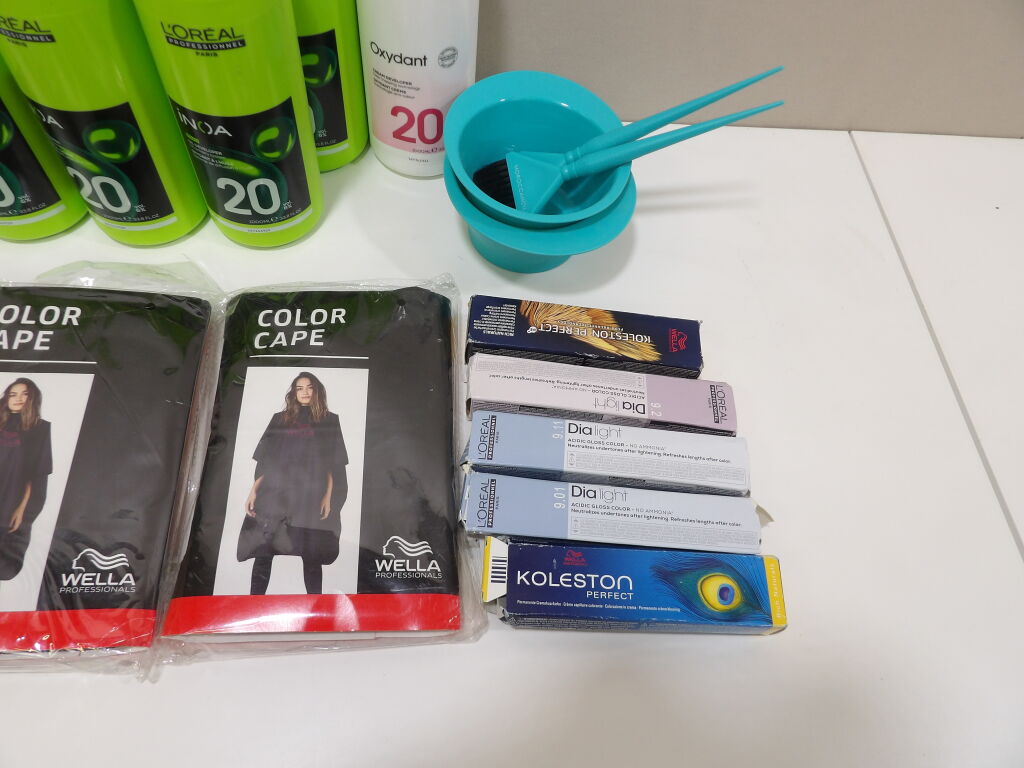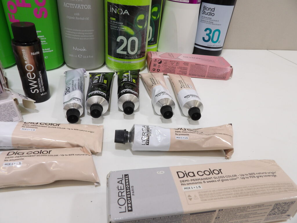 Lot d'une trentaine d'articles NEUFS et OCCASION pour cheveux : OXYDANTS dont L'Oréal Paris, crèmes colorantes, etc ....