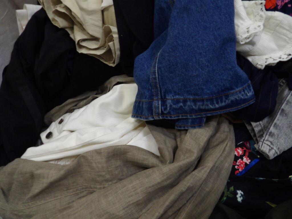 Palette de 200 pièces de vêtements d'occasion et certains neufs : Femme, Enfant, Homme ( divers gammes et marques dont Maje - Ba&sh Zadig et Voltaire ...) - ATTENTION ce lot est d'occasion tous états et contient divers gammes donc de l'entrée type KIABI aussi. il n'est pas composé uniquement des marques citées.