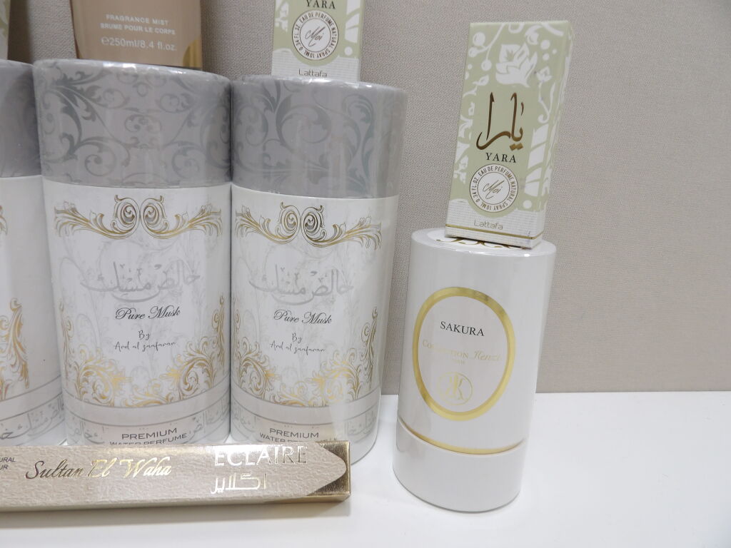 PARFUMS ORIENTAUX - lot 10 articles neufs - différentes fragrances : Pure musk by ard al Zaafaran + Eclaire + Sakura collection kenzi + Yara Lattafa