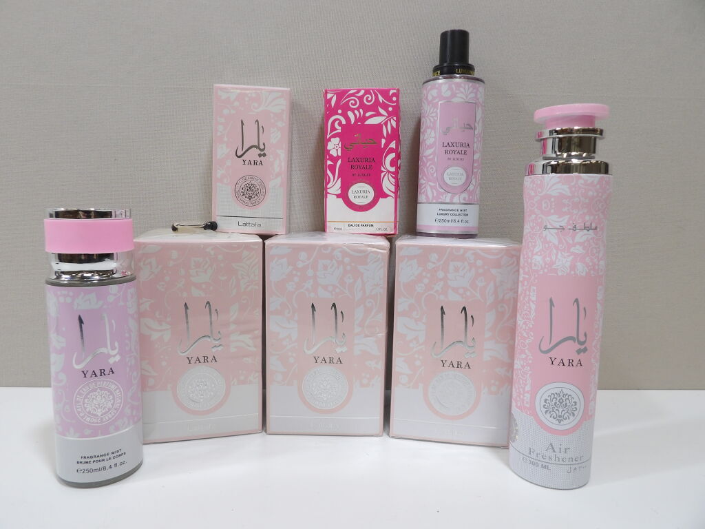 PARFUMS ORIENTAUX - lot 8 articles neufs - différentes fragrances : YARA - Lattaffa + Laxuria royale