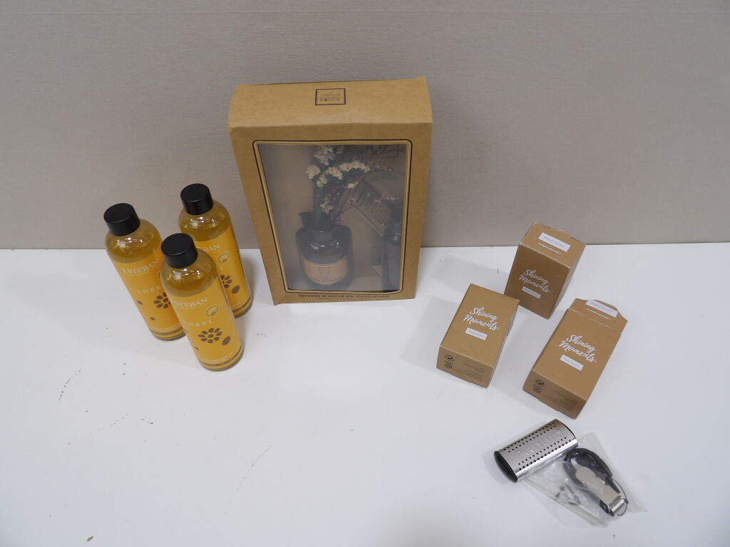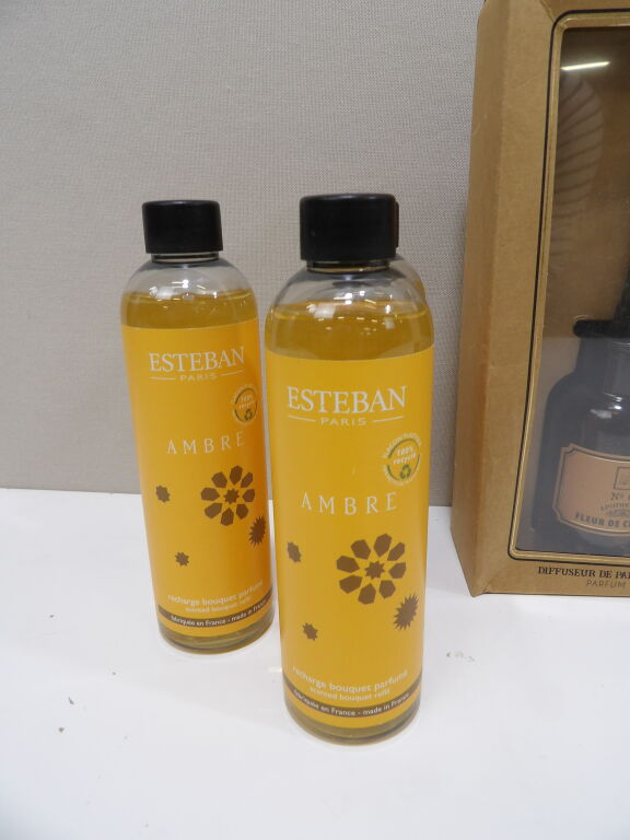 SENT-BON : x3 recharges bouquets parfumées ESTEBAN Ambre, x1 Diffuseur de parfum avec fleurs séchées et x3 Partylite portes fragrances de diffuseurs de parfum voiture.