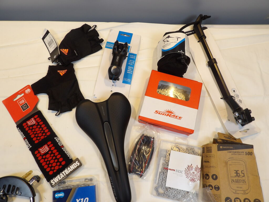 1 Selle - 1 Bequille - 1 Protection anti sueur - Gant - Poignet éponge - Potence Neuf