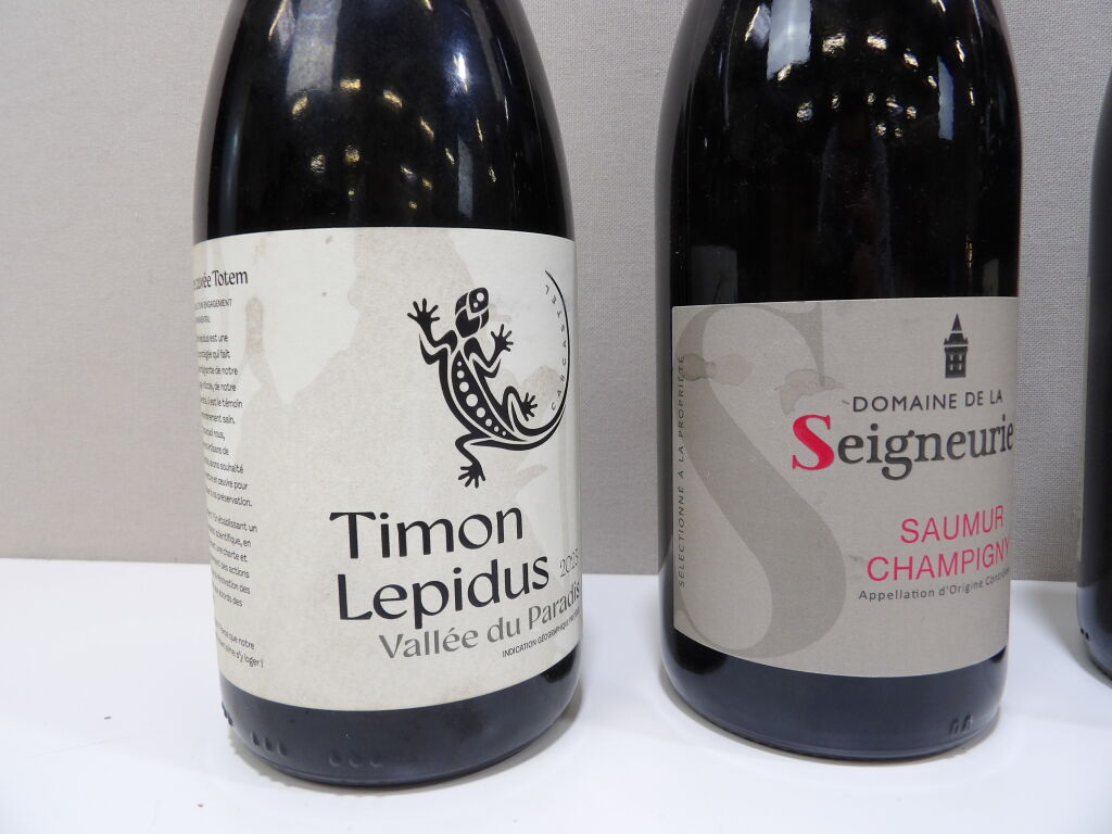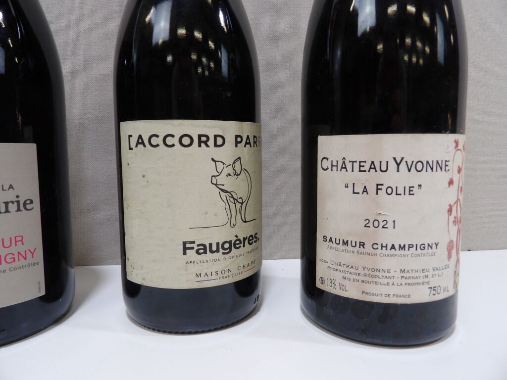 VINS ROUGE de SAUMUR au LANGUEDODC x4 bouteilles : x1 Château Yvonne La Folie 2021, x1 Domaine de la Seigneurie 2023, x1 Faugères 2023 Maison Chape et x1 Timon Lepidus Vallée du Paradis 2023.