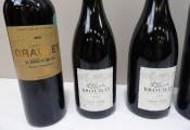 VINS ROUGE Tour d'Europe des Vins x6 bouteilles : x1 Blaye Côtes de Bordeaux Château Graulet 2020, x2 Le Chatelin de Brouilly 2024, x1 Cuvée rouge si Beau de Mainz 2024, x1 Pinot Noir d'Alsace 2024, et x1 NOUS CINQ de Cocumont.