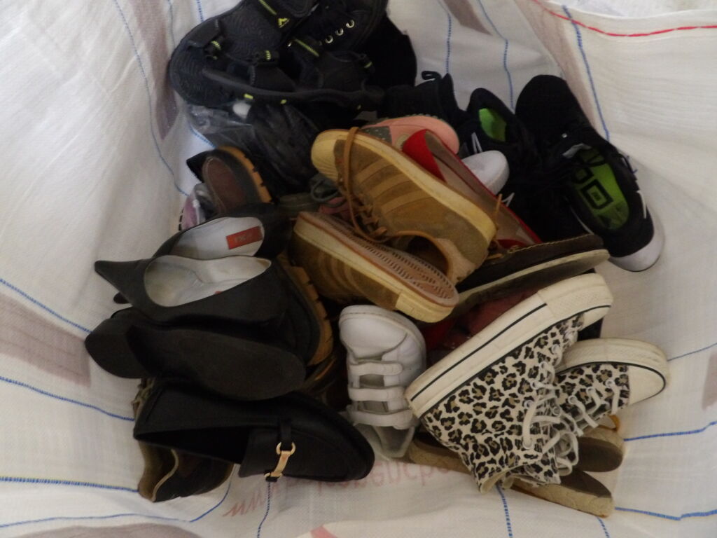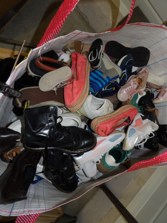 1/2 Palette de 80 paires de chaussures d'occasion, certaines neuves : Homme, Femme et enfant (divers gammes et marques ....)