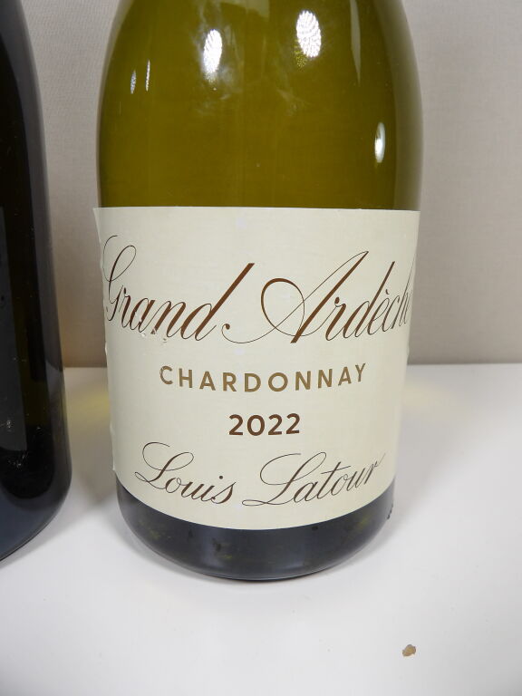 3 magnums : vin blanc Grand Ardèche Louis Latour 2022, vin rosé Batti domaine de la Galinière IGP Méditerranée 2024 et vin rouge Saumur Champigny Antoine Sanzay cuvée Les Poyeux 2018 (étiquette abîmée)