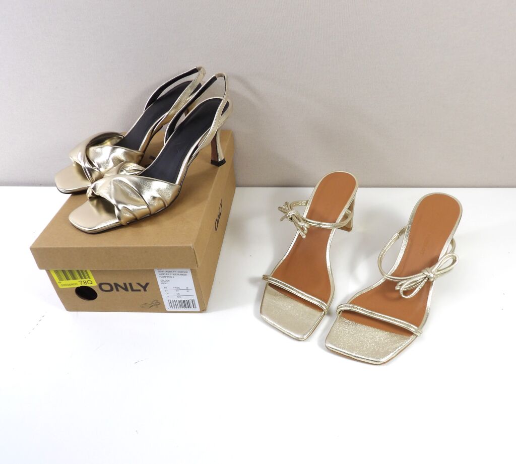 CLAUDIE PIERLOT - ONLY - Lot de deux paires de sandales à talons en cuir doré - Taille 37 - Neuf