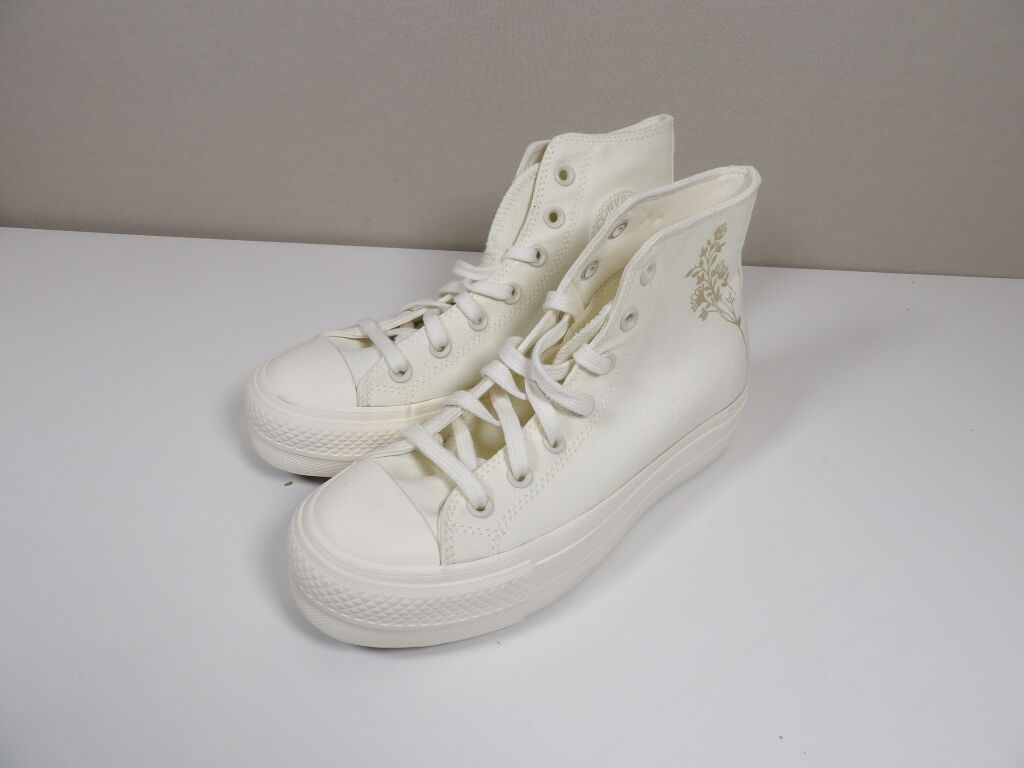 - Baskets Converse montantes et compensées coloris écru avec détails floral doré (Taille 37.5)