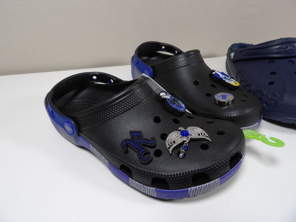 CROCS - Lot de x3 paires en 39-40 - NEUVES : Rouges flash, bleu foncé avec fausse fourrure intérieur et noir avec détails RAVENCLAW et charms.