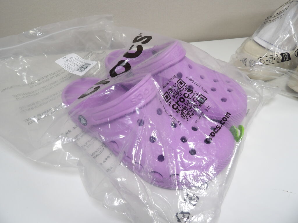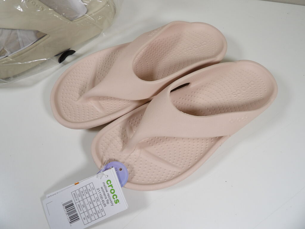 CROCS - Lot de x3 paires en 39-40 - NEUVES : Tongs roses pales, BAYA en violet et getaway plateforme avec passage gros orteil en beige.