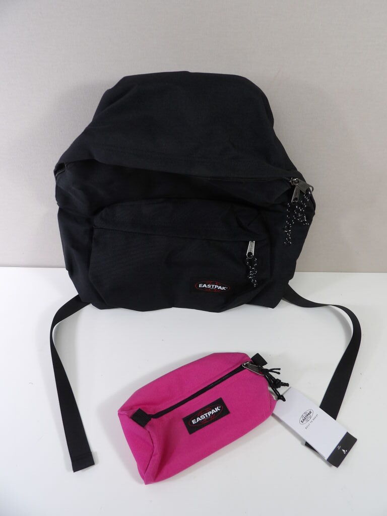 EASTPAK - Lot de x2 articles NEUFS : Sac à dos iconique noir, de 24L (40x30x18CM), avec une trousse rose.