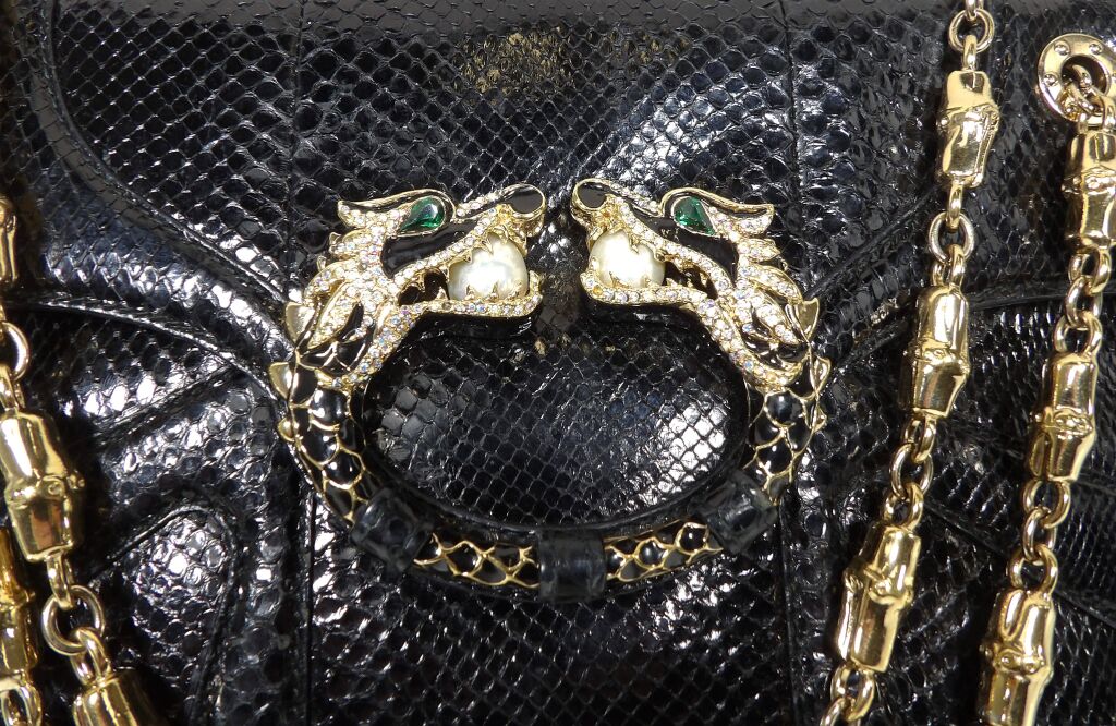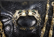 - Magnifique sac à rabat orné d'une double tête de dragons recouvert de strass et perles
