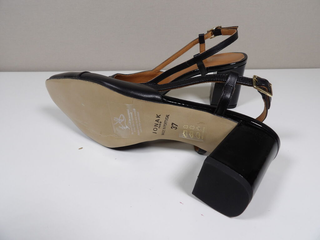 JONAK - Escarpins bi-matière en cuir lisse et vernis noir - Taille 37 - Neuf avec boîte