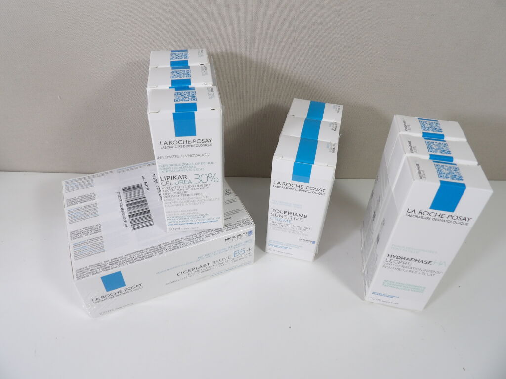 LA ROCHE-POSAY - Lot de x12 articles NEUFS : x3 HYDRAPHASE HA LEGERE, x3 LIPIKAR GEL UREA 30%, x3 CICAPLAST BAUME B5+ et x3 TOLERIANE SENSITIVE CREME.
