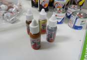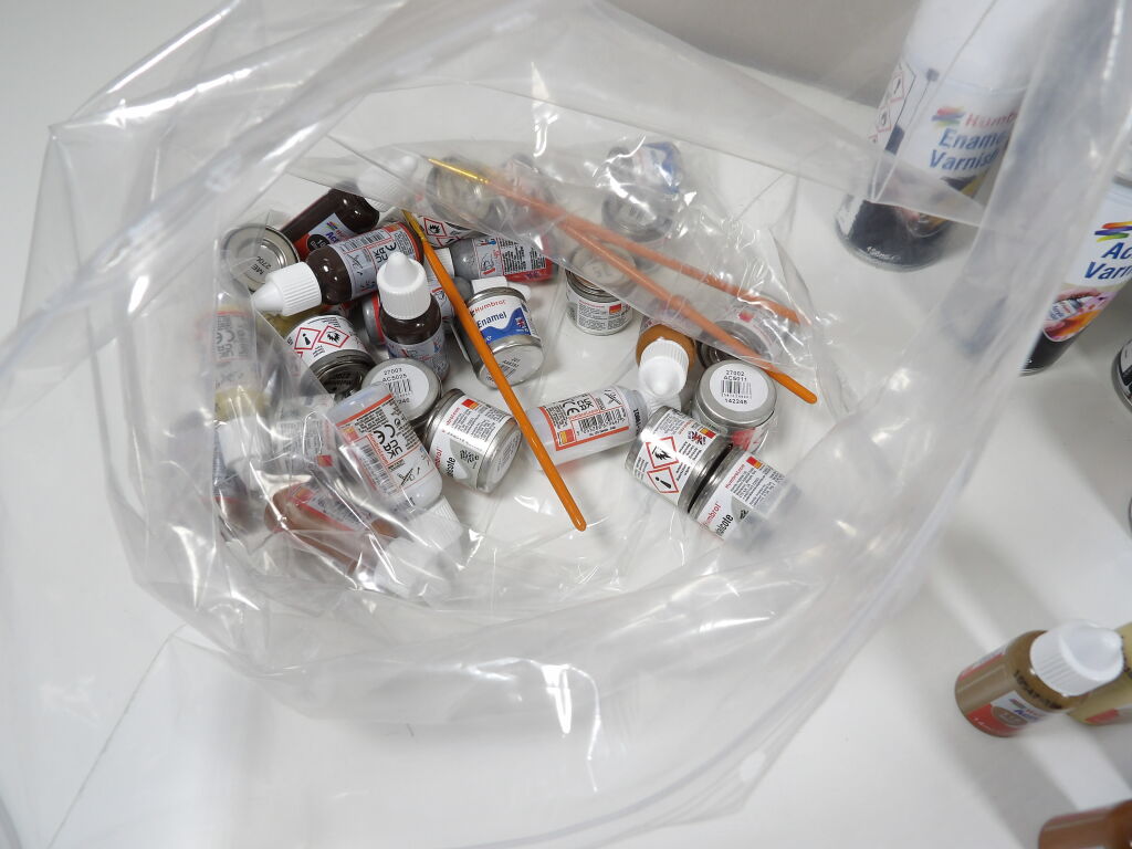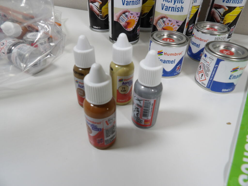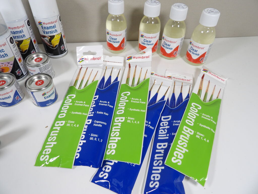 LOISIRS CREATIFS : Lot HUMBROL et autres : comprenant pinceaux, Bombes d'Acrylic varnish en spray, Vernis transparent satiné, et autres produits : émail, ...