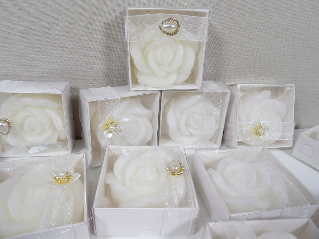 Lot de x40 bougies - motif rose blanche - idéal pour un mariage ou autres évènements.
