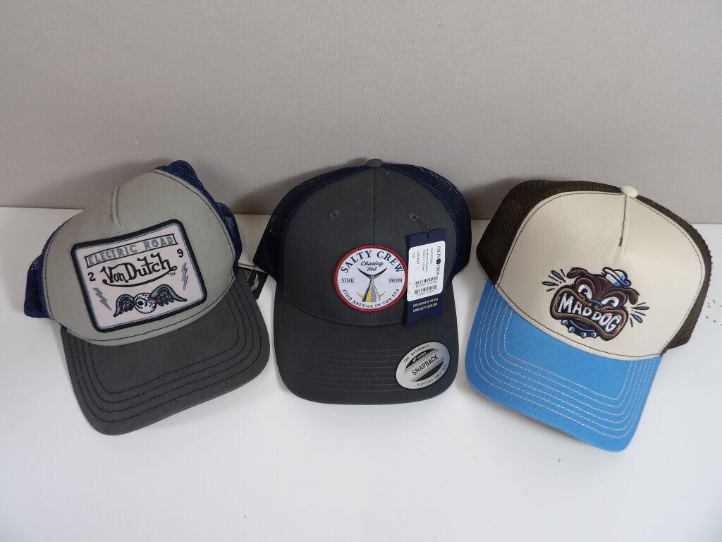 Lot STREETWEAR de x3 casquettes neuves : MAD DOG, VON DUTCH et SALTY CREW.
