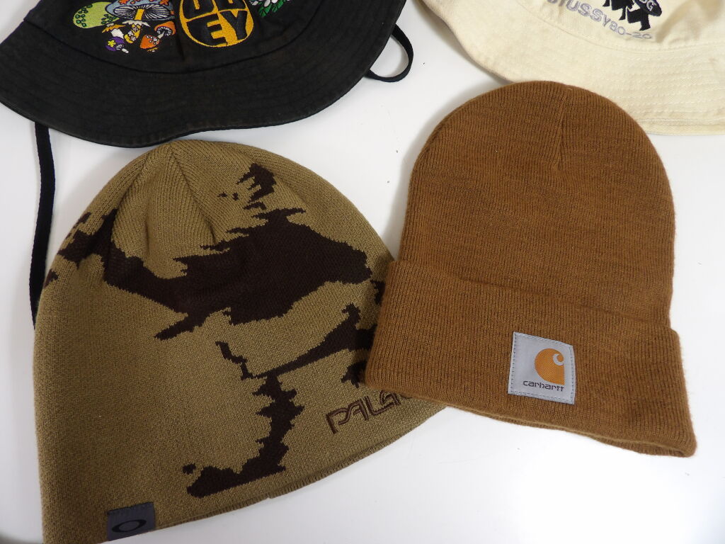 Lot STREETWEAR D'occasion de x4 bonnets et bob : STUSSY, OBEY, CARHARTT et PALACE.