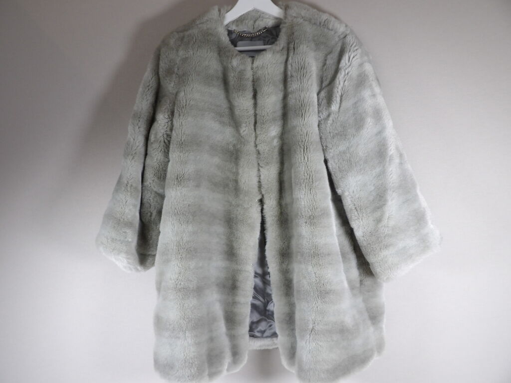 MARELLA - Manteau en fausse fourrure d'occasion - couleur grise, manches 3/4.