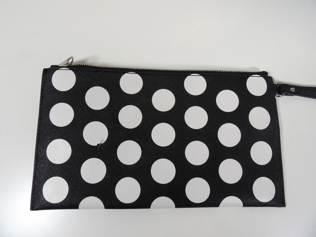-Pochette à pois noir et blanc, 25x14CM, fermeture zippée.