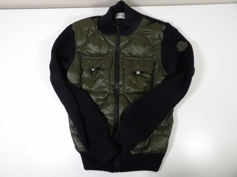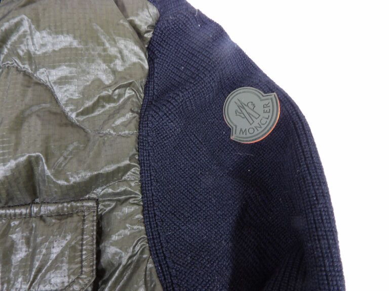 50% de laine - coloris kaki et bleu marine, logo Moncler sur la manche.