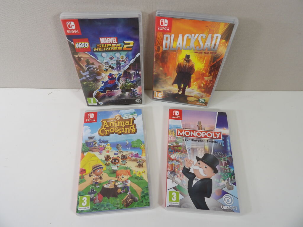 NINTENDO SWITCH : Lot de x4 jeux d'occasion : BLACKSAD Under the skin, Animal Crossing, MONOPOLY et MARVEL Super Heroes 2.