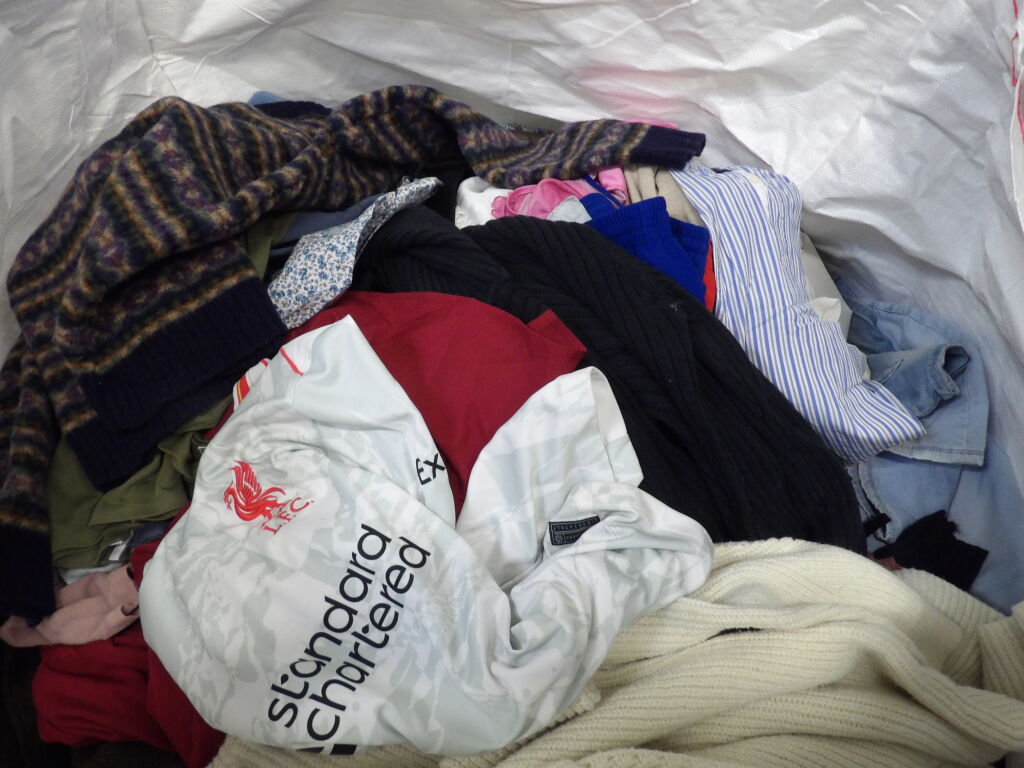 Palette de 200 pièces de vêtements d'occasion et certains neufs : Femme, Enfant, Homme ( divers gammes et marques dont Sezanne - Istella forest - Liu jo..) - ATTENTION ce lot est d'occasion tous états et contient divers gammes donc de l'entrée type KIABI aussi. il n'est pas composé uniquement des marques citées.