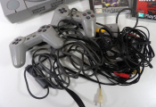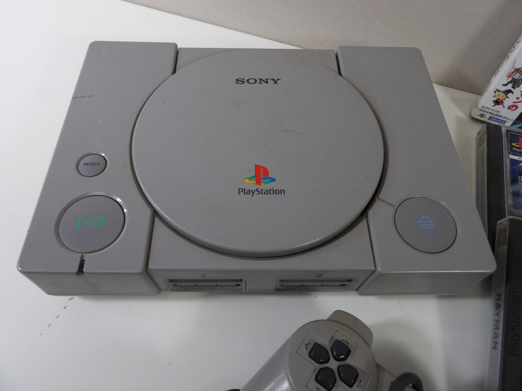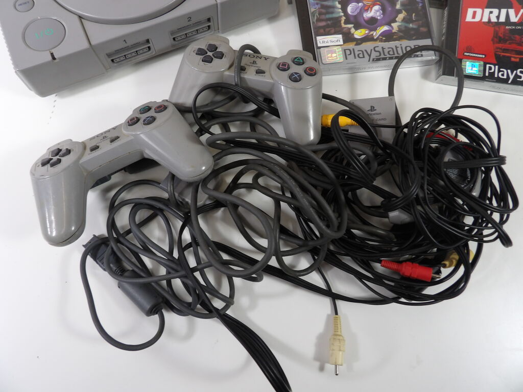 PLAYSTATION : Console de jeux vidéos d'occasion (testée et fonctionnelle), avec x2 manettes, x1 carte mémoire, et x6 jeux. Tous d'occasion.