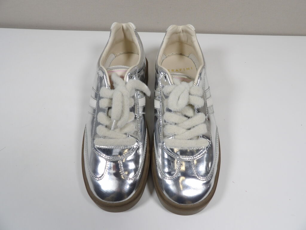 SERAFINI - Sneakers modèle court en cuir argent miroir - Taille 39 - Neuf sans boîte