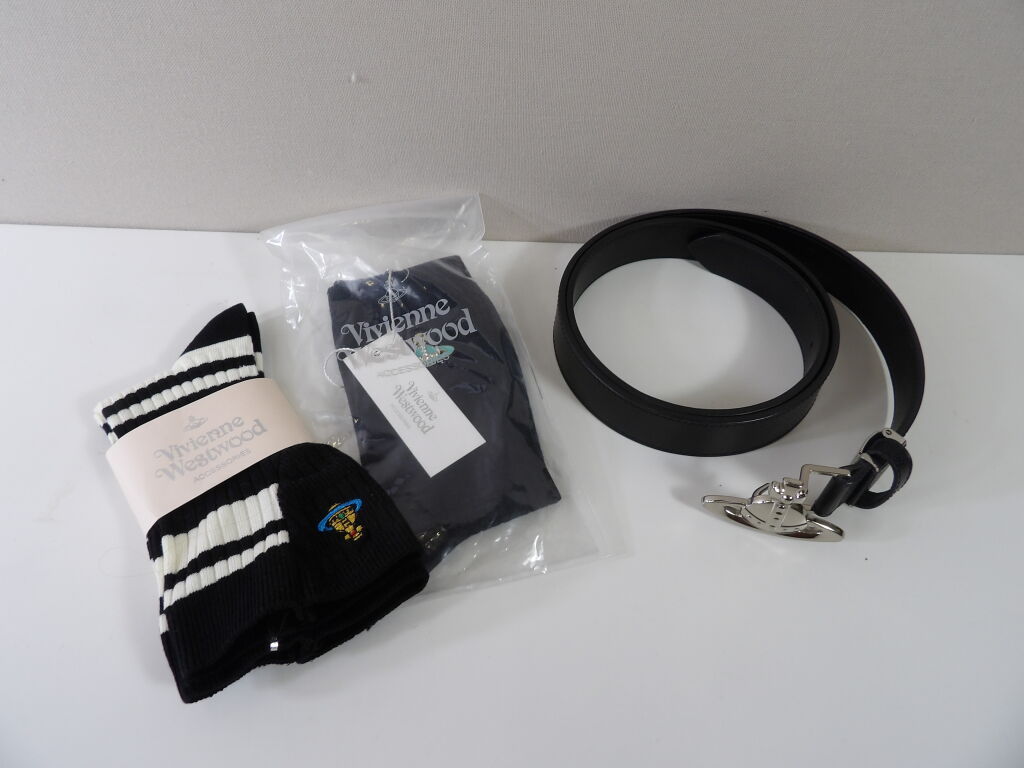 VIVIENNE WESTWOOD Lot de x3 articles : Une ceinture d'occasion bon état T90 et 2 paires de chaussettes neuves.