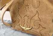 Motifs surpiqués WESTERN, avec Bandoulière en cuir ajustable et amovible, Rabat à fermeture aimantée et Poche appliquée à l'intérieur. Dimensions : 14 x 16 x 11 cm. Avec son dustbag.