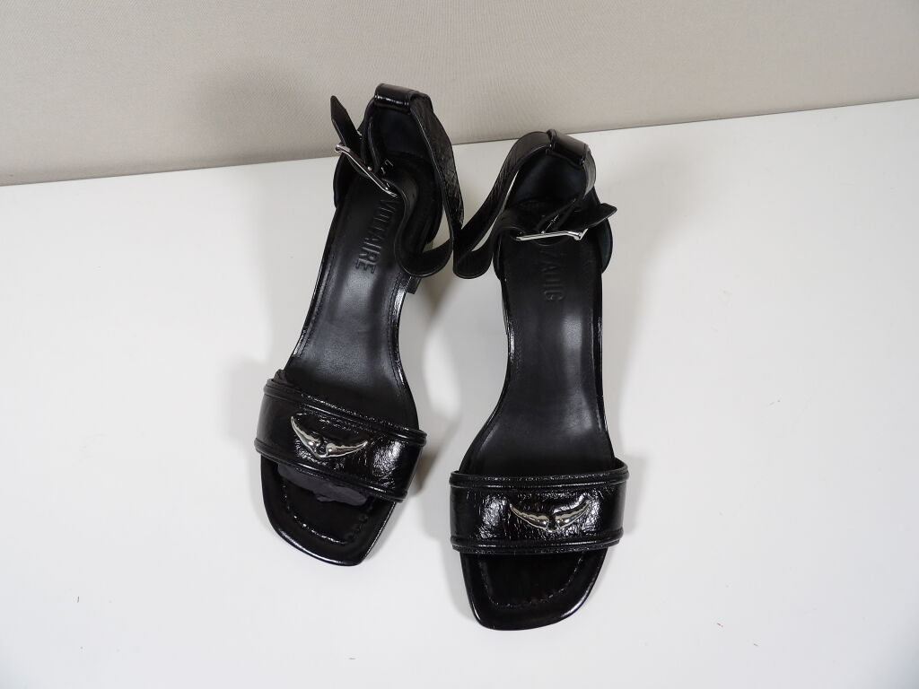 ZADIG & VOLTAIRE Sandales en cuir vernis noires, avec logo, en taille 37. NEUVES !