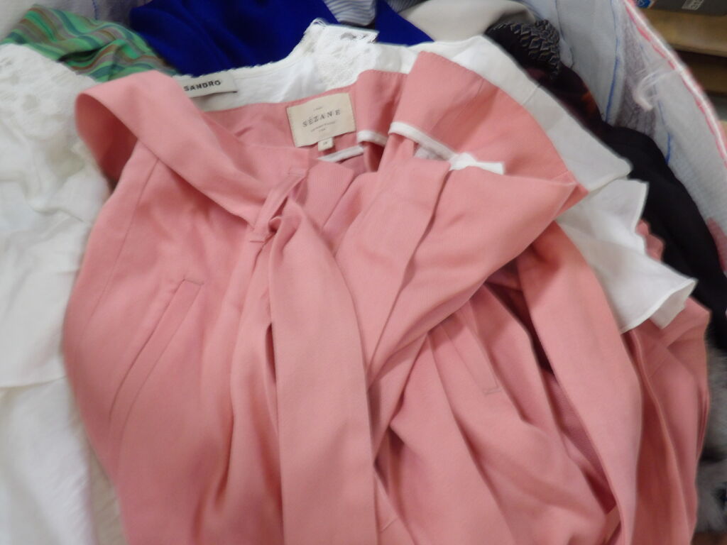 1/2 palette de 85 pièces de vêtements d'occasion et certains neufs : Femme, Enfant, Homme ( divers gammes et marques dont Sézane, Sandro...) - ATTENTION ce lot est d'occasion tous états et contient divers gammes donc de l'entrée type KIABI aussi. il n'est pas composé uniquement des marques citées.