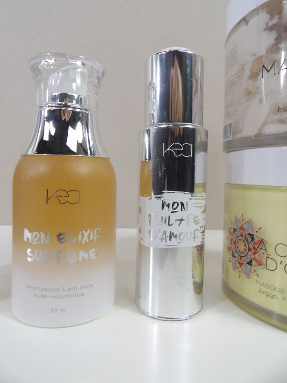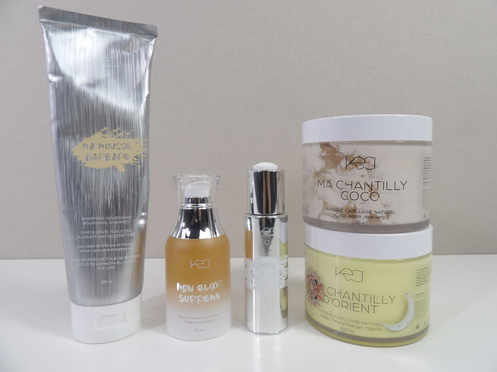 5 soins capilaires de marque Kea, shampoing, masques ...