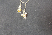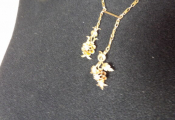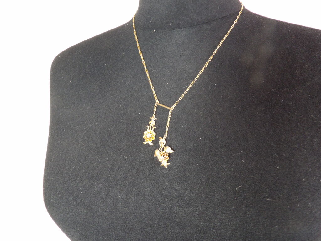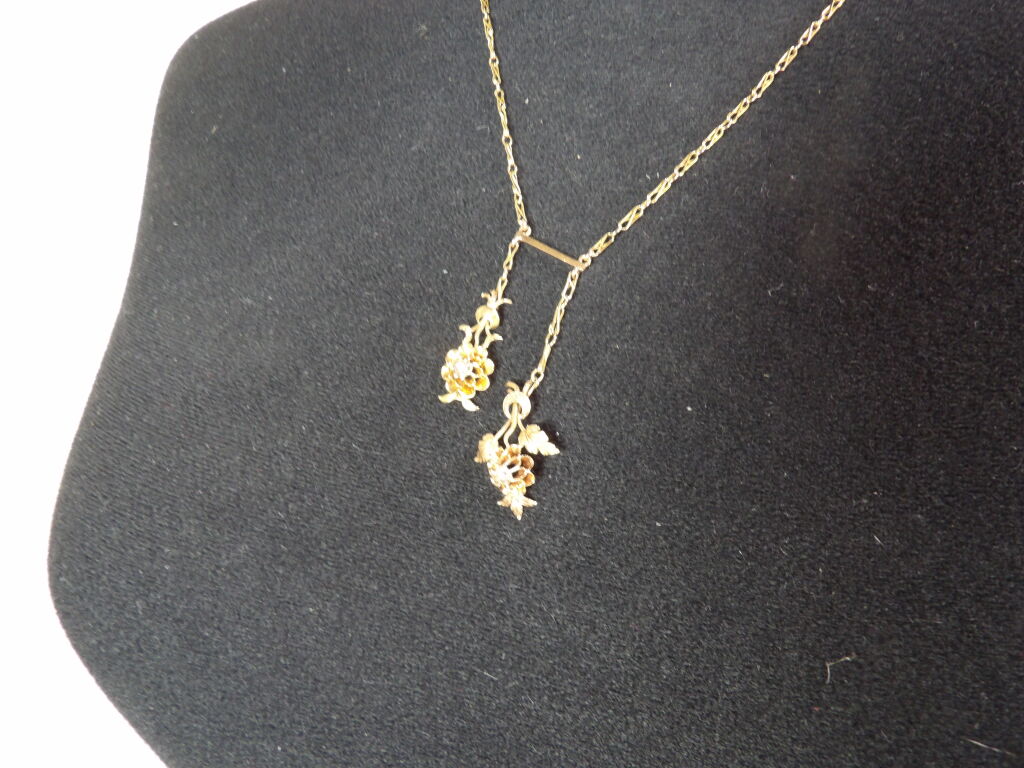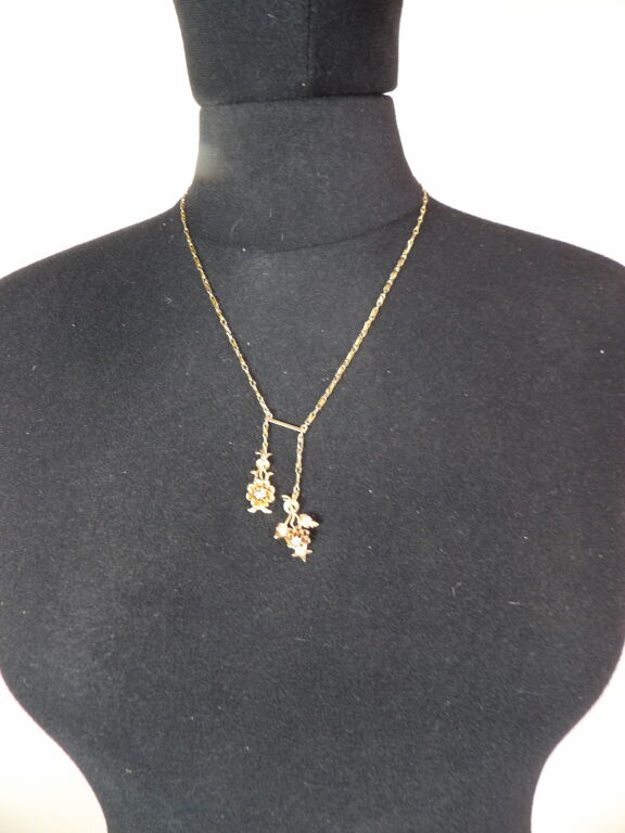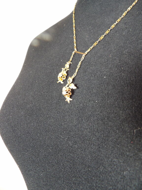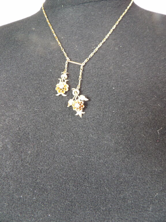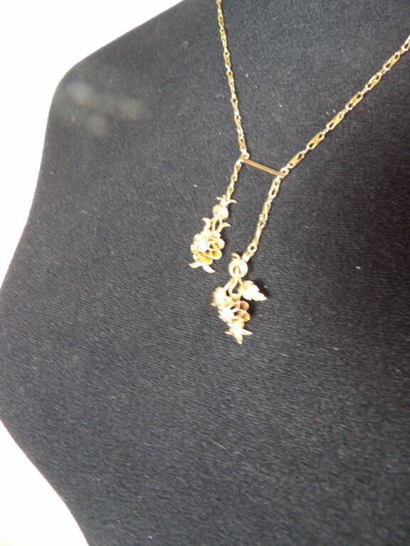 BIJOU : Collier négligé en or (poinçon tête d'aigle) à décors floraux ornés de 2 diamants taille ancienne poids brut 6,40 g.